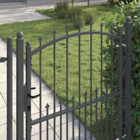 The Modern Fence Gate with Spikes brings a contemporary edge to any outdoor setting. This rectangular gate, characterized by clean lines and an unobtrusive style, offers both aesthetic value and functionality. Powder-coated steel ensures it stands robust against elements, making it perfect for gardens or terraces. Material Quality: Constructed with powder-coated steel, ensuring resilience against and weather. This material choice provides a smooth finish that complements modern aesthetics while offering long-term durability. Its inherent strength guarantees that your outdoor space remains secure across all seasons, with minimal maintenance required to retain its pristine look. Robust Locks: Featuring deadbolt locks, the gate enhances security, preventing unauthorized access. Known for strength, these locks are key-operated, making them ideal for heavier gate structures. This crucial component assures peace of mind, as your garden and terrace stay protected even when not in sight, with three matching keys included. Architectural Style: An arched top combines with sleek spikes, delivering a stylish barrier that adorns your property. This artistic design element not only elevates the visual appeal but also adds a layer of deterrence against climbing. The balance between form and function makes it suitable for diverse outdoor ambiances. Complete Package: Delivered with two sturdy posts and hinges, this kit simplifies installation. Practical assembly requirements ensure that you achieve a cohesive look in your exterior space. Designed for ease and longevity, the components collectively provide seamless operation and structural integrity. Maintenance Guidelines: Maintain its elegance by simply wiping with a damp cloth. This straightforward care routine ensures that the gate remains as appealing as the day it was installed, with minimal effort invested.