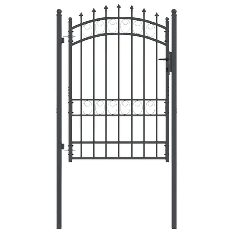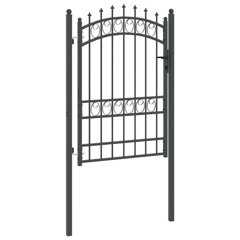 This elegant fence gate adds both functionality and modern aesthetics to any outdoor space. Tailor-made for garden and terrace areas, it combines a timeless design with security. Constructed from durable powder-coated steel, this Rectangular gate is not only robust and weather-resistant but also aesthetically pleasing, enhancing the overall look of your premises. The arched top design with its sleek spikes provides a statement of style, while maintaining the necessary safety and division in your garden. Powder-Coated Steel: Built with high-quality powder-coated steel, the gate withstands various weather conditions, ensuring longevity and minimal maintenance. The durable finish prevents ,bumps, or scratches, making it perfect for continuous outdoor exposure. Secure Deadbolt Locks: Featuring deadbolt locks, this gate offers heightened security, ensuring your garden remains safe from unwanted access. The locks are robust, requiring a key for operation, which gives you peace of mind in knowing your outdoor space is secured. Arched Top Design: The elegant arched top enhances your garden’s visual appeal. This design, coupled with decorative spikes, adds a modern touch to any landscape, creating an inviting entrance that is both functional and stylish. Complete Set: Delivered with everything needed, including two sturdy posts, strong hinges, and three matching keys. This complete set simplifies assembly and assures stability upon installation, allowing you to achieve the finish you desire quickly and effectively. Care &Maintenance: Easy to maintain, this gate only requires an occasional wipe with a damp cloth, keeping it looking pristine and fresh, without the need for rigorous care routines. Such low maintenance supports long-lasting aesthetics and function.