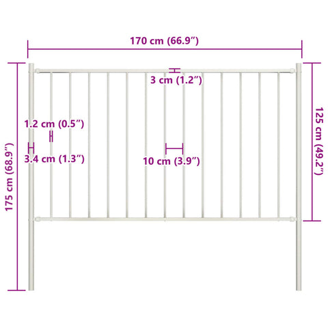 Fence Panel with Posts Powder-coated Steel 1.81x1.25 m White 145217