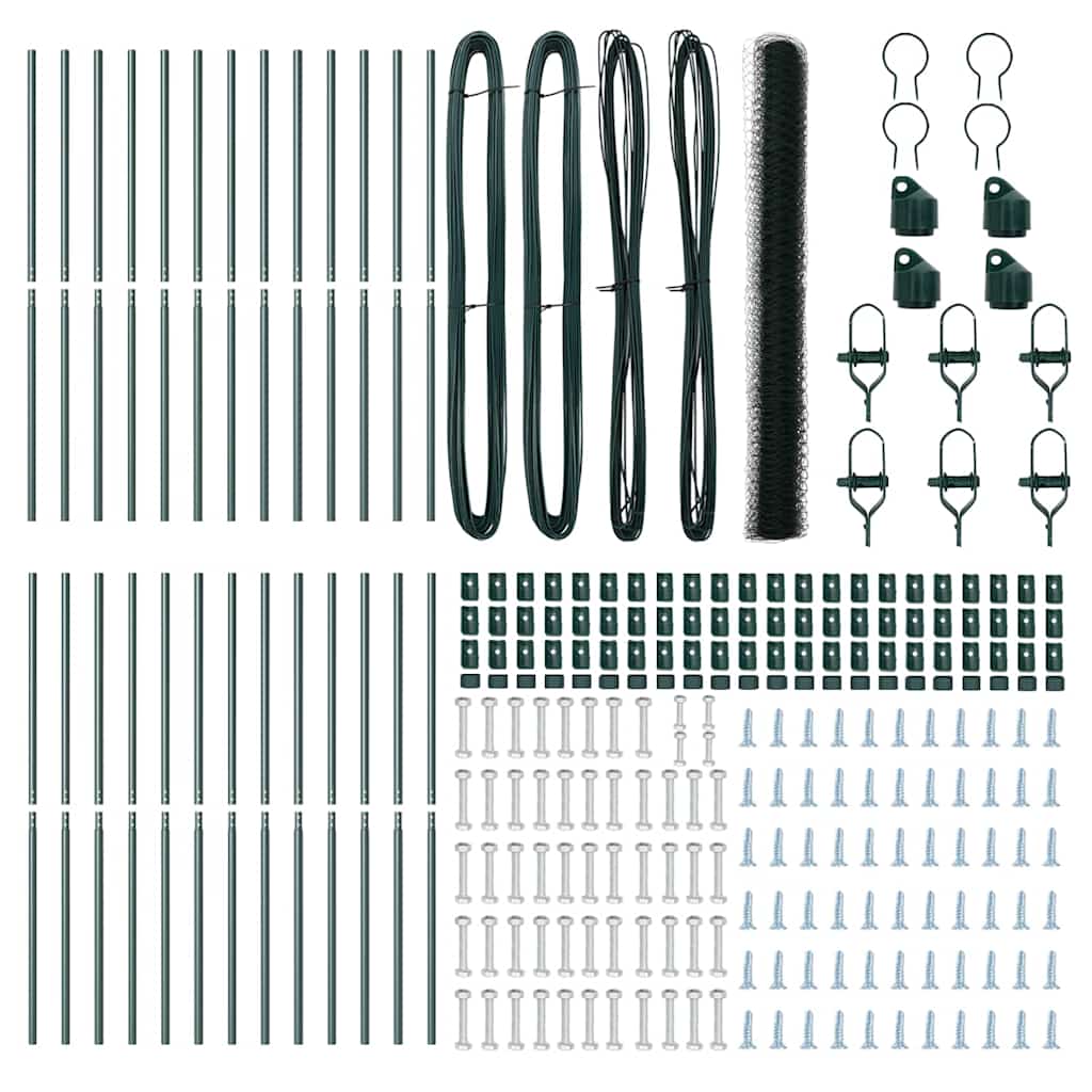 Fence with Posts Green 1.5 x 50 m PVC-coated steel 3352723