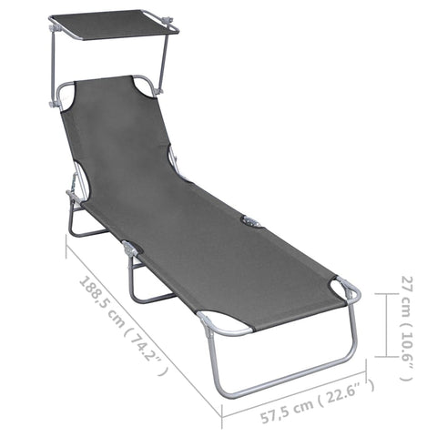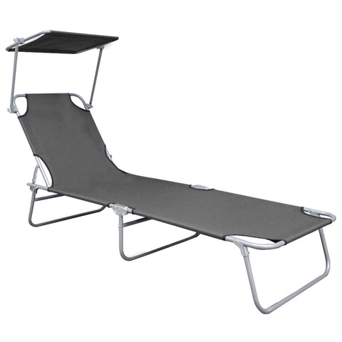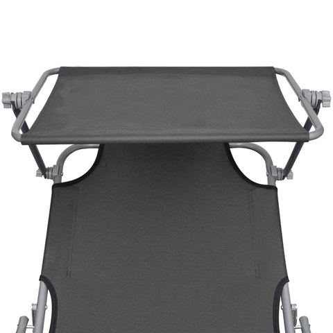 Folding Sun Lounger with Canopy Grey Aluminium 47772