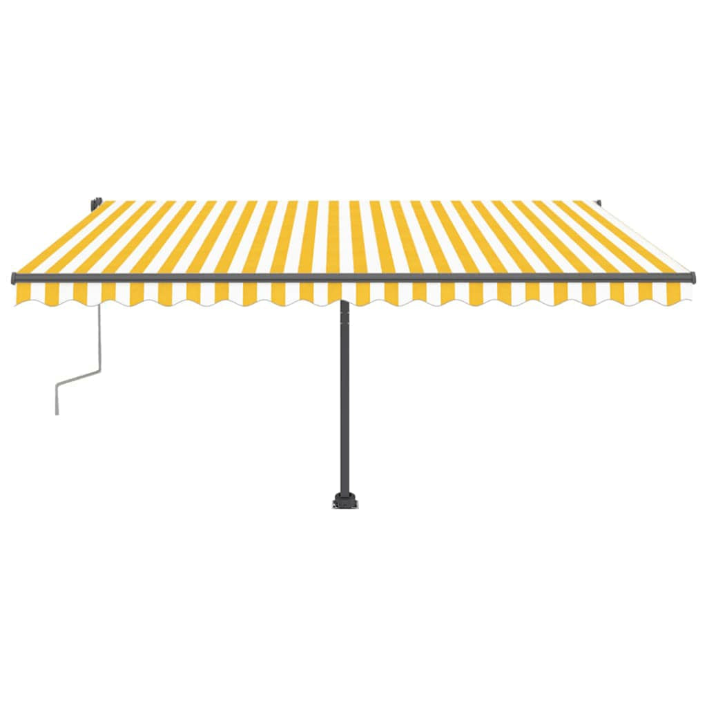 Create a nice and cool place in your outdoor spaces with this retractable awning! Built with rust-resistant powder-coated aluminium frame, this outdoor awning is lightweight yet sturdy. The patio awning's fabric is made of high-density polyester with PU coating, which is UV and water-resistant. Additionally, the angle and height can be adjusted to meet your specific needs. You can open and retract the freestanding awning smoothly with the long hand crank. The sturdy base can be rotated 360 degrees, providing maximum adjustment needs.