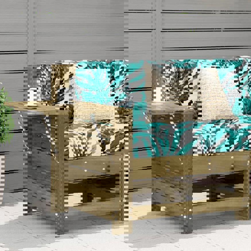 This wooden garden sofa with cushion will make a great addition to your garden, terrace, or patio for chatting with family and friends or just enjoying the weather. Impregnated wood: Impregnation is a preservation process that is carried out by using autoclaves. The pressure-treatment increases resistance to decay and weather.Comfortable seat experience: The backrest and the cushions make the garden sofa chair more comfortable to sit on.Convenient side table: This outdoor furniture features a foldable side table with a gas spring on the armrests, providing a convenient spot to keep your essentials within easy reach.Slatted design: The slatted design of the wooden garden chair prevents water accumulation, keeping the seat dry and preventing unnecessary rotting.Modular design: The sectional sofa is flexible and easy to move around. You can combine it with other modular segments available in the drop-down menu to create your own personal garden lounge set configurations!Wide applications: The garden armchair is perfect for any front porch, patio, backyard, lawn, garden, etc. Good to know:To make sure your outdoor furniture stays beautiful, we recommend protecting it with a waterproof cover.