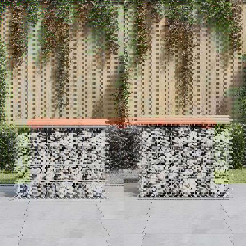 Create your own outdoor seating space with this garden bench! This garden bench will be a real eye-catcher in your outdoor living space. Solid douglas wood: This top of the garden seat is made of solid douglas wood for durability. Douglas wood is also strong enough to work with minimum care, even under the influence of the weather. Sturdy and stable base: This outdoor bench features a galvanised steel gabion basket base that is designed to be filled with rocks and gravels for additional beauty. The mesh grid of gabion basket is welded with transverse and longitudinal wires at every intersection for extra stability.Compact design: This garden bench seat is perfect for a limited space thanks to its narrow and compact design.Wide range of uses: This park bench is suitable for gardens, backyards, patio spaces, secret corner locations and more. Good to know:To make sure your outdoor furniture stays beautiful, we recommend protecting it with a waterproof cover.