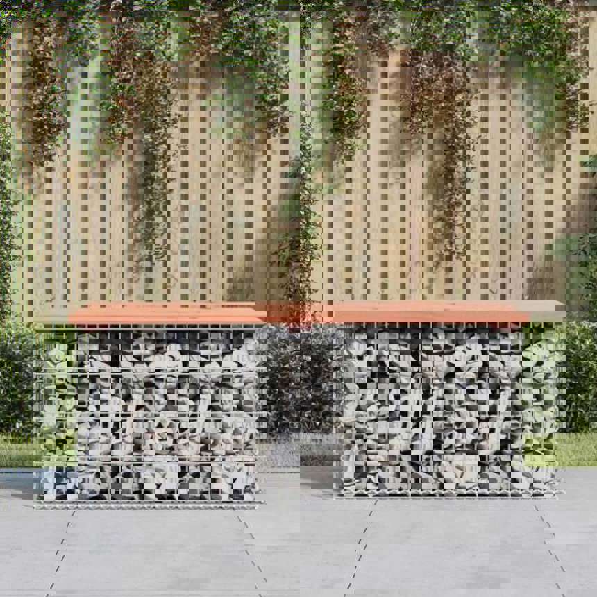 Create your own outdoor seating space with this garden bench! This garden bench will be a real eye-catcher in your outdoor living space. Solid douglas wood: This top of the garden seat is made of solid douglas wood for durability. Douglas wood is also strong enough to work with minimum care, even under the influence of the weather. Sturdy and stable base: This outdoor bench features a galvanised steel gabion basket base that is designed to be filled with rocks and gravels for additional beauty. The mesh grid of gabion basket is welded with transverse and longitudinal wires at every intersection for extra stability.Compact design: This garden bench seat is perfect for a limited space thanks to its narrow and compact design.Wide range of uses: This park bench is suitable for gardens, backyards, patio spaces, secret corner locations and more. Good to know:To make sure your outdoor furniture stays beautiful, we recommend protecting it with a waterproof cover.