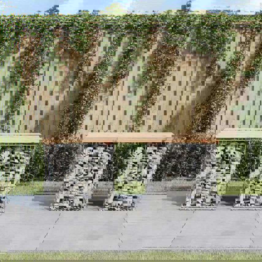 Create your own outdoor seating space with this garden bench! This garden bench will be a real eye-catcher in your outdoor living space. Solid pinewood: This top of the garden seat is made of solid pinewood for durability. Solid pine wood is a beautiful natural material. It has a straight grain, and the knots give the material its signature, rustic look.Sturdy and stable base: This outdoor bench features a galvanised steel gabion basket base that is designed to be filled with rocks and gravels for additional beauty. The mesh grid of gabion basket is welded with transverse and longitudinal wires at every intersection for extra stability.Compact design: This garden bench seat is perfect for a limited space thanks to its narrow and compact design.Wide range of uses: This park bench is suitable for gardens, backyards, patio spaces, secret corner locations and more. Good to know:To make sure your outdoor furniture stays beautiful, we recommend protecting it with a waterproof cover.