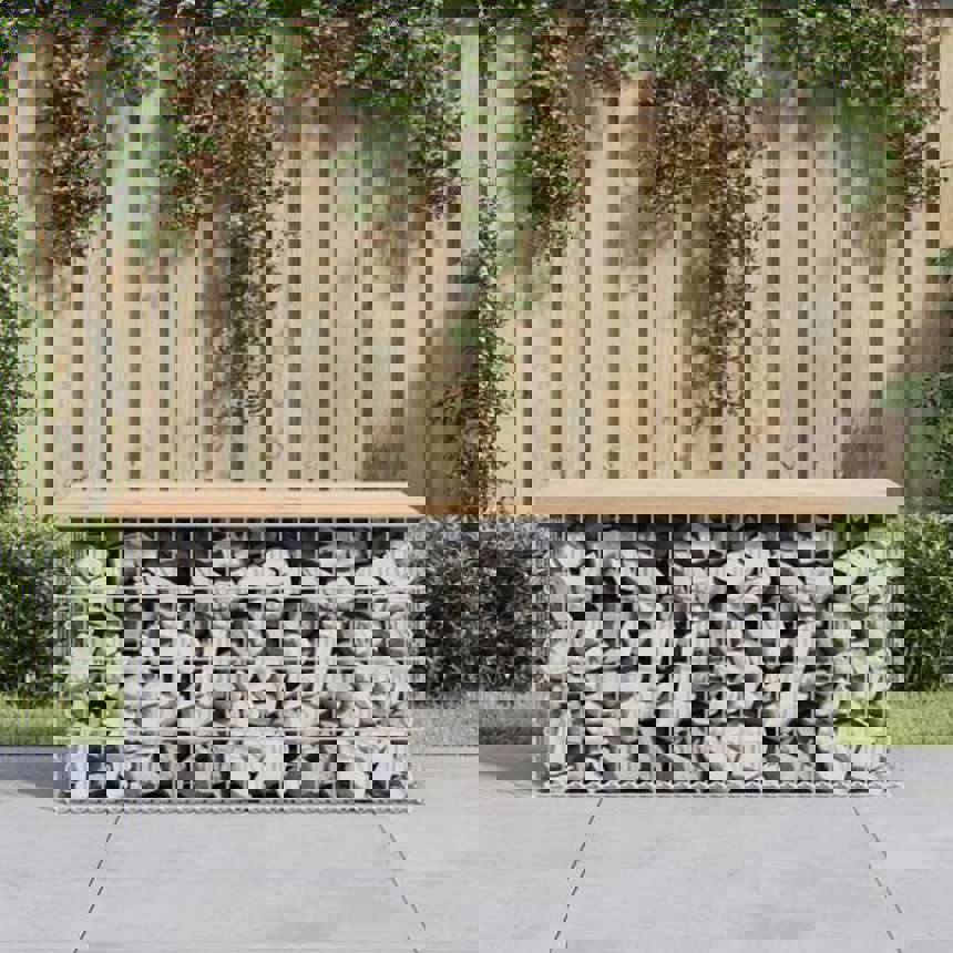 Create your own outdoor seating space with this garden bench! This garden bench will be a real eye-catcher in your outdoor living space. Solid pinewood: This top of the garden seat is made of solid pinewood for durability. Solid pine wood is a beautiful natural material. It has a straight grain, and the knots give the material its signature, rustic look.Sturdy and stable base: This outdoor bench features a galvanised steel gabion basket base that is designed to be filled with rocks and gravels for additional beauty. The mesh grid of gabion basket is welded with transverse and longitudinal wires at every intersection for extra stability.Compact design: This garden bench seat is perfect for a limited space thanks to its narrow and compact design.Wide range of uses: This park bench is suitable for gardens, backyards, patio spaces, secret corner locations and more. Good to know:To make sure your outdoor furniture stays beautiful, we recommend protecting it with a waterproof cover.