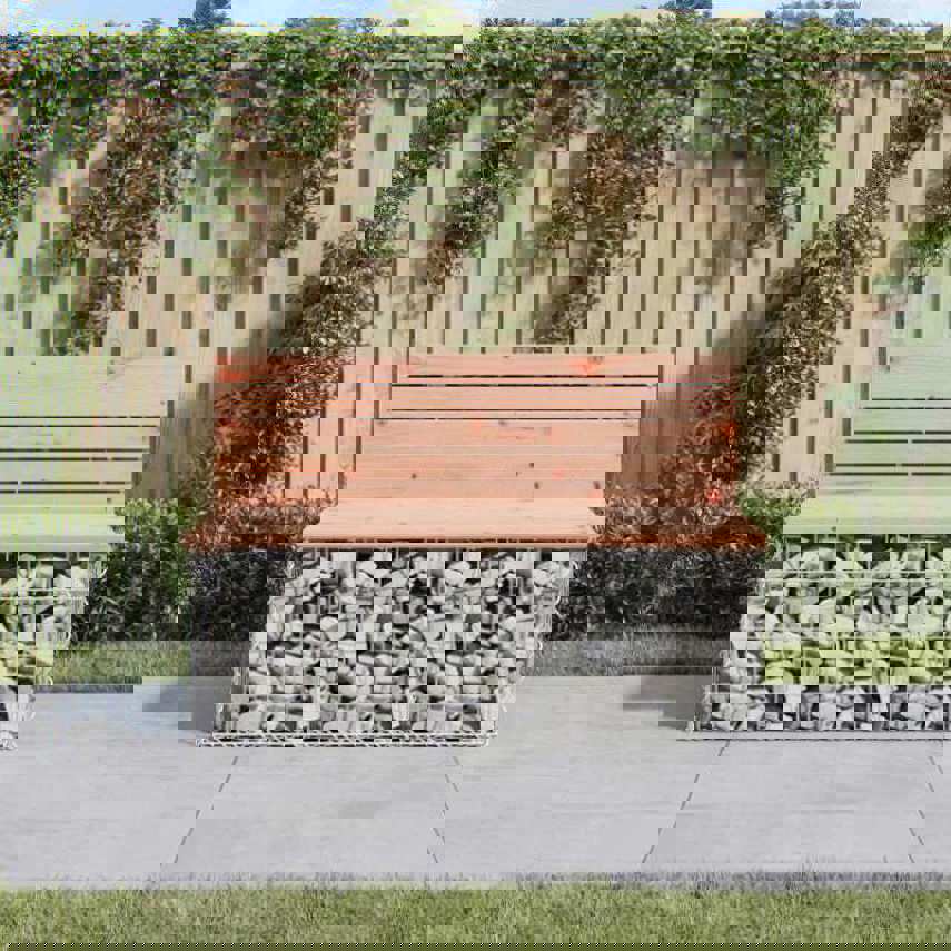 Create your own outdoor seating space with this garden bench! This garden bench will be a real eye-catcher in your outdoor living space. Solid douglas wood: This top of the garden seat is made of solid douglas wood for durability. Douglas wood is also strong enough to work with minimum care, even under the influence of the weather. Sturdy and stable base: This outdoor bench features a galvanised steel gabion basket base that is designed to be filled with rocks and gravels for additional beauty. The mesh grid of gabion basket is welded with transverse and longitudinal wires at every intersection for extra stability.Compact design: This garden bench seat is perfect for a limited space thanks to its narrow and compact design.Wide range of uses: This park bench is suitable for gardens, backyards, patio spaces, secret corner locations and more. Good to know:To make sure your outdoor furniture stays beautiful, we recommend protecting it with a waterproof cover.