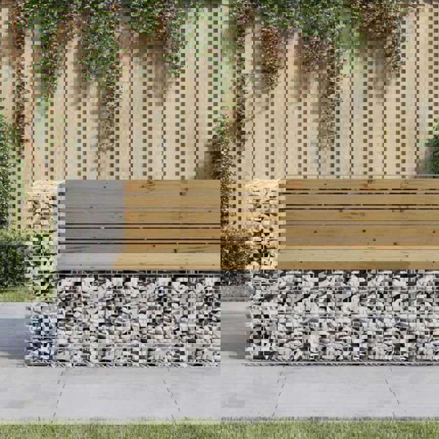 Create your own outdoor seating space with this garden bench! This garden bench will be a real eye-catcher in your outdoor living space. Impregnated wood: This top of the garden seat is made of vacuum pressure impregnated pinewood for durability. Solid pine wood is a beautiful natural material. It has a straight grain, and the knots give the material its signature, rustic look. Impregnation is a preservation process that is carried out by using autoclaves. The pressure-treatment increases resistance to decay and weather.Sturdy and stable base: This outdoor bench features a galvanised steel gabion basket base that is designed to be filled with rocks and gravels for additional beauty. The mesh grid of gabion basket is welded with transverse and longitudinal wires at every intersection for extra stability.Compact design: This garden bench seat is perfect for a limited space thanks to its narrow and compact design.Wide range of uses: This park bench is suitable for gardens, backyards, patio spaces, secret corner locations and more. Good to know:To make sure your outdoor furniture stays beautiful, we recommend protecting it with a waterproof cover.