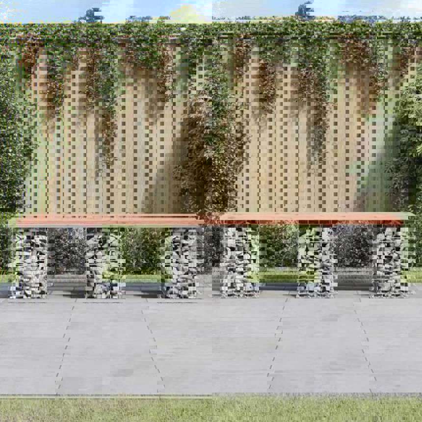 Create your own outdoor seating space with this garden bench! This garden bench will be a real eye-catcher in your outdoor living space. Solid douglas wood: This top of the garden seat is made of solid douglas wood for durability. Douglas wood is also strong enough to work with minimum care, even under the influence of the weather. Sturdy and stable base: This outdoor bench features a galvanised steel gabion basket base that is designed to be filled with rocks and gravels for additional beauty. The mesh grid of gabion basket is welded with transverse and longitudinal wires at every intersection for extra stability.Compact design: This garden bench seat is perfect for a limited space thanks to its narrow and compact design.Wide range of uses: This park bench is suitable for gardens, backyards, patio spaces, secret corner locations and more. Good to know:To make sure your outdoor furniture stays beautiful, we recommend protecting it with a waterproof cover.
