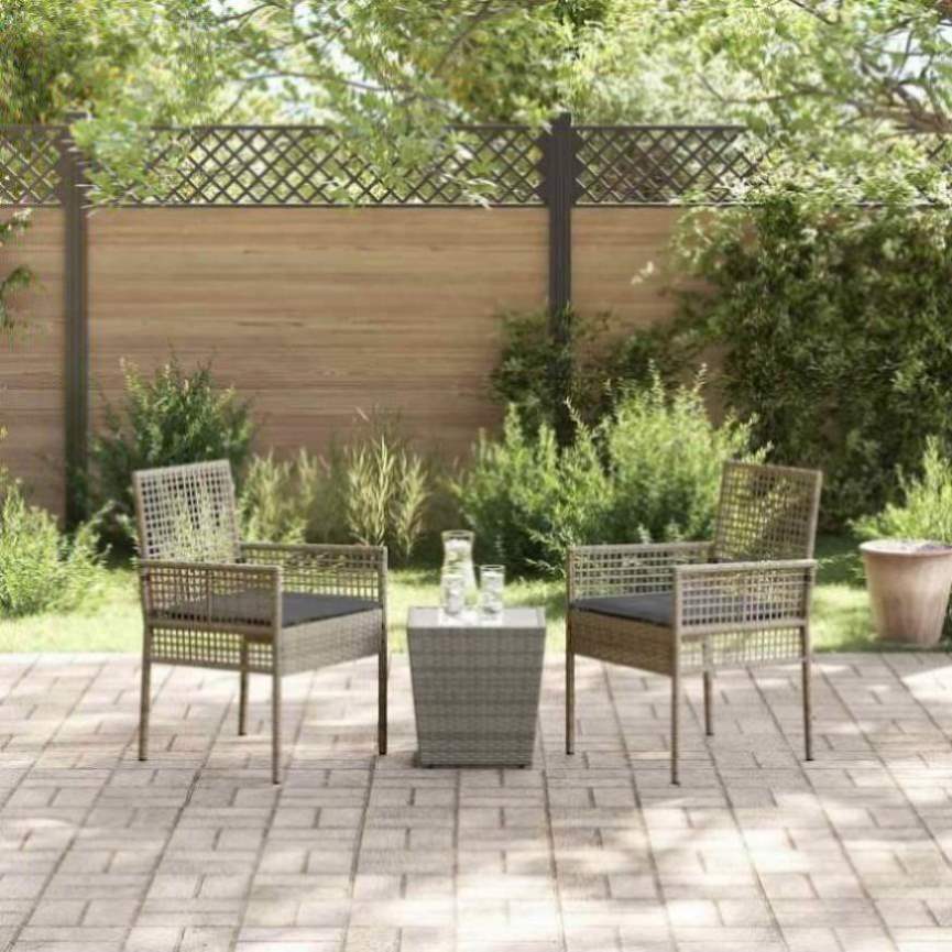 This Garden Bistro Set is the bee's knees for outdoor style, blending good looks with practicality. It's perfect for your garden or patio and has a fresh, modern vibe. Ideal for kicking back in the sun or enjoying a casual bite outdoors, it's made for folks who love nature and comfort. The sturdy build means it's a reliable choice, making it a welcome addition to any outside area. Durable Poly Rattan: Made from strong poly rattan, this bistro set is built to last. It can take on all sorts of weather, keeping its charm no matter the season. Plus, the woven design means it looks great with any outdoor style and is tough against wear and tear. Complete Ensemble: The set gives you everything you need for your garden – a compact table and two chairs, all with soft cushions for extra comfort. The table is perfect for drinks or displaying nice bits and bobs, while the comfy chairs have backrests for that relaxed seating vibe, whether you're having a laugh with friends or enjoying quiet moments. Weather-Resistant Features: Built to withstand the elements, the Garden Bistro Set shines in all sorts of outdoor settings. Be it rain or shine, it stands up to UV rays and moisture, keeping its good shape and look all year long, so you can chill out without worries. Suitable for Outdoor Retreat: Perfect for gardens, patios, or terraces, this set is a great spot for those who value peace or like to host mates. Its stylish design fits right in with any surround, making it a fab place to enjoy the weather. Effortless Maintenance: Keeping this bistro set in great shape is a piece of cake. Just give it a wipe with a damp cloth to keep it clean. The tough material not only looks nice but is also practical, ensuring that you can enjoy the outdoors with little fuss, making it a treasured part of your garden set-up.