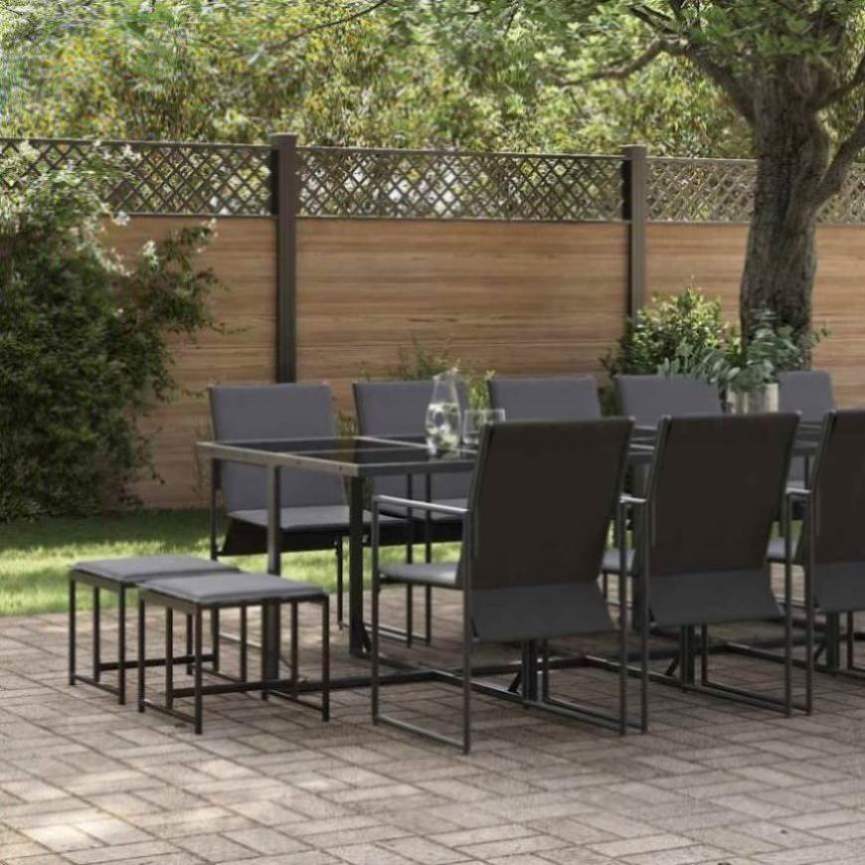 Garden Dining Set 15 pcs Black Steel 3335866