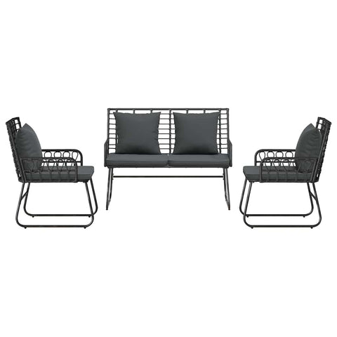 Garden Dining Set 3 pcs Black and Anthracite Poly rattan, steel 42010352