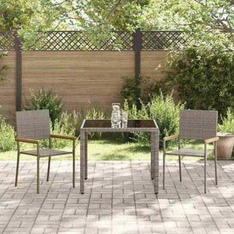 This Modern Garden Dining Set is the perfect mix of style and practicality for any outdoor space. If you love contemporary vibes and being outside, this one's for you. It’s got clean lines and not too much fuss, so it fits right in with any garden or terrace, giving you a great spot for get-togethers. The poly rattan and tempered glass look really smart together—ideal for outdoor dining or just chilling out in style. Whether you're throwing a brunch or having a quiet night under the stars, this set's got you covered for comfort and fun. Poly Rattan Material: The seats are wrapped in tough poly rattan, making them look modern and tough enough for the outdoors. It can handle sunlight and moisture like a champ, so it stays looking good for ages. Perfect for outdoor hangouts, it’s got style while being useful. Component Details: The set includes a table with a tempered glass top and seats wrapped in poly rattan. The steel frame underneath ensures it's solid, providing a steady base. Every bit is picked for comfort and strength, making it great for all sorts of outdoor fun. Modern Characteristics: With flat armrests and a simple post-leg design, it’s both easy on the eye and sturdy. The tempered glass top paired with the textured poly rattan gives it a modern, classy vibe that feels welcoming too. Each part shows off the practical design that's key in modern furniture. Diverse Outdoor Use: Whether it’s in the garden, on the terrace, or by the pool, this set fits in perfectly. Its flexible style is great for fancy dinners, relaxed lounging, or party vibes, easily adapting to whatever you're up to. Care & Maintenance: For longer life, just cover it when you’re not using it. It's easy to clean, so it stays looking good, and some basic care goes a long way. A smart buy for those who want low maintenance but high enjoyment.