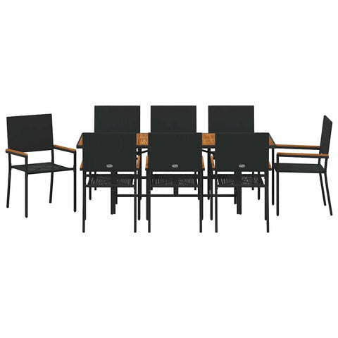Garden Dining Set 9 pcs Black and Brown Poly Rattan 3365432