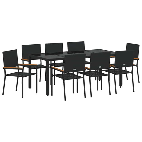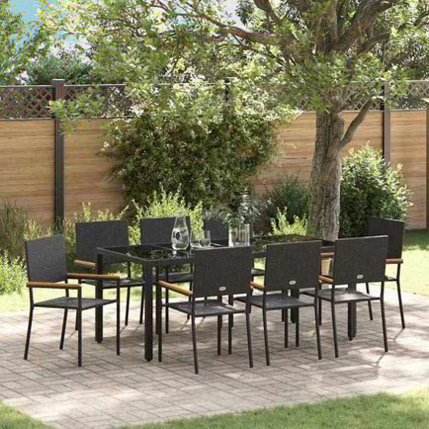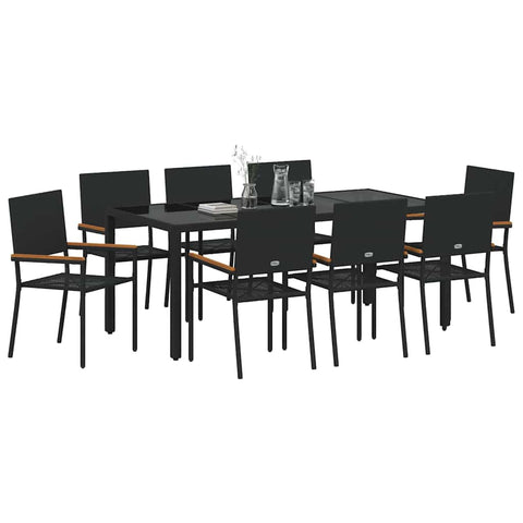Garden Dining Set 9 pcs Black Poly Rattan 3365399
