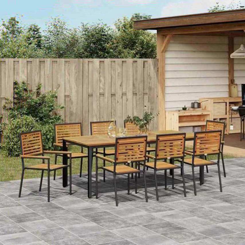 This garden dining set, called the Modern Garden Dining Set, boasts a sleek, minimal design, making it a fab addition to any outdoor dining area. It’s designed specifically for gardens and terraces, combining functionality with style. With its blend of poly rattan and solid acacia wood, the set has a modern feel thanks to its clean lines and simple look. Perfect for al fresco dining, it creates a sophisticated atmosphere, letting you enjoy meals surrounded by nature. Durable Materials: The Modern Garden Dining Set cleverly combines poly rattan and solid acacia wood for a strong, long-lasting build. The poly rattan gives it a stylish, modern look, while the solid acacia wood brings a warm, natural vibe that's tough against wear and tear, holding up well through seasonal changes. Sturdy Structure: With flat armrests and post legs made of steel, everything’s designed to offer top support and stability. The post legs provide robust support like you’d find in rustic-style tables, making sure this set is sturdy and reliable for everyday use and big gatherings. Functional Design: The finished back, made from poly rattan, adds a touch of elegance without skimping on comfort. Its thoughtful design simplifies blending in with various outdoor décor styles while staying distinct and eye-catchy. Outdoor Use: Specifically made for outdoor settings, this set matches perfectly with gardens and terraces. Its resilience to the elements keeps it looking fab, so family and friends can enjoy comfortable meals in a lovely spot. Maintenance Tips: To keep it looking great, it’s best to use an outdoor furniture cover when the set's not in use. This simple step protects it from bad weather and UV rays without ruining its look.