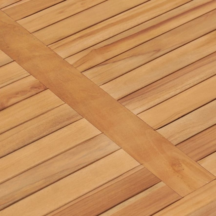 This solid wooden dining table with a water-based finish will add a touch of natural charm to your kitchen, garden or patio. Constructed from extremely durable teak hard wood, this piece of teak furniture has been seasoned, kiln dried and then fine sanded to give a very smooth appearance. Teak wood is known for its exceptional strength and weather resistance, making it far more suitable for garden furniture than any other kind of wood. Teak wood is the perfect choice if you want to purchase a long lasting piece of garden furniture. A beautiful water-based finish is applied to give the wood a warm colour. Thanks to the extra thick tabletop (2.8 cm) and big legs (5x5 cm), this solid wood table is very durable and can comfortably accommodate your guests. With its water-resistant feature and classic look, you can place this piece anywhere around your sweet home – indoors or outside! Our table is easy to assemble.