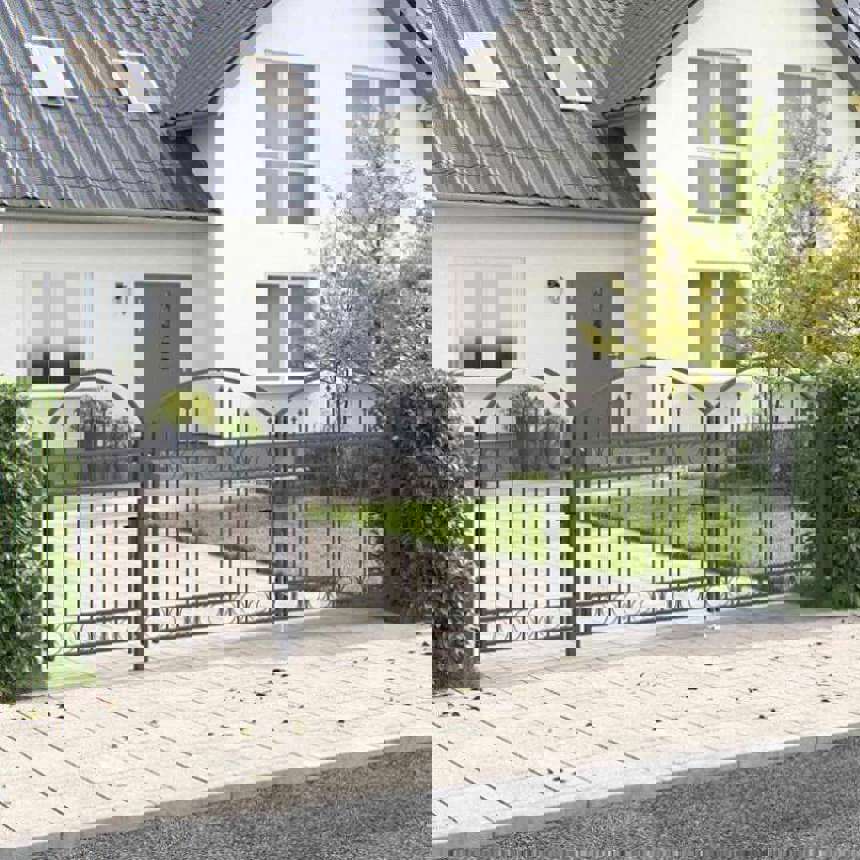 This durable garden fence gate with an arched top showcases a modern style blending simplicity with functionality, perfect for outdoor spaces like gardens and terraces. Crafted from smooth, water-resistant steel, this gate offers an elegant appearance while enhancing security in your garden area. The sleek design complements contemporary landscapes, allowing it to serve both decorative and practical purposes. Steel Construction Made from solid steel, this garden gate is built to last, offering unrivaled durability against the elements. The material's strength ensures the gate withstands various weather conditions, promising long-term use. Its smooth texture not only contributes to a visually appealing look but also makes the gate easy to clean and maintain. Arched Top Design The stylish arched top contributes a touch of elegance to garden spaces. It not only enhances the visual appeal but also delivers a distinctive design element that can become a garden focal point or blend seamlessly with other outdoor features. Secure and Lockable This gate includes a lockable feature, providing added security for your garden. This functionality is crucial for safety, ensuring that the gate remains firmly closed, whether to keep pets contained or to prevent unauthorized access. Posts and Installation The gate comes with three sturdy posts that provide essential support and stability. While assembly is required, a drill is the only necessary tool, allowing for a straightforward installation process fitting your garden needs. Effortless Care When installed, this garden gate requires minimal maintenance. It's designed for outdoor use, needing only basic cleaning to preserve its appearance. With powder-coated finish, it resists and wear, maintaining its utility and looks over time.