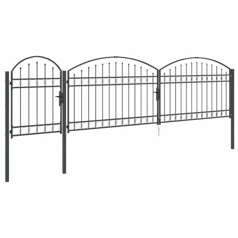Garden Fence Gate with Arched Top Grey 500 x 100 cm Steel 42008959