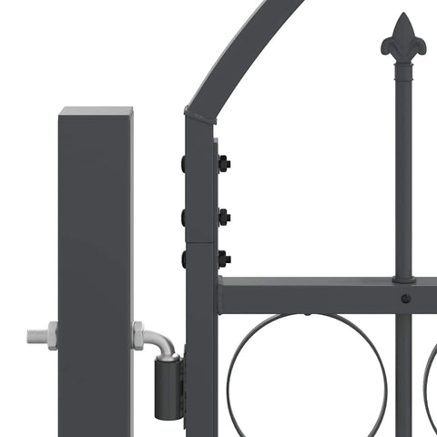 This durable garden fence gate with an arched top showcases a modern style blending simplicity with functionality, perfect for outdoor spaces like gardens and terraces. Crafted from smooth, water-resistant steel, this gate offers an elegant appearance while enhancing security in your garden area. The sleek design complements contemporary landscapes, allowing it to serve both decorative and practical purposes. Steel Construction Made from solid steel, this garden gate is built to last, offering unrivaled durability against the elements. The material's strength ensures the gate withstands various weather conditions, promising long-term use. Its smooth texture not only contributes to a visually appealing look but also makes the gate easy to clean and maintain. Arched Top Design The stylish arched top contributes a touch of elegance to garden spaces. It not only enhances the visual appeal but also delivers a distinctive design element that can become a garden focal point or blend seamlessly with other outdoor features. Secure and Lockable This gate includes a lockable feature, providing added security for your garden. This functionality is crucial for safety, ensuring that the gate remains firmly closed, whether to keep pets contained or to prevent unauthorized access. Posts and Installation The gate comes with three sturdy posts that provide essential support and stability. While assembly is required, a drill is the only necessary tool, allowing for a straightforward installation process fitting your garden needs. Effortless Care When installed, this garden gate requires minimal maintenance. It's designed for outdoor use, needing only basic cleaning to preserve its appearance. With powder-coated finish, it resists and wear, maintaining its utility and looks over time.