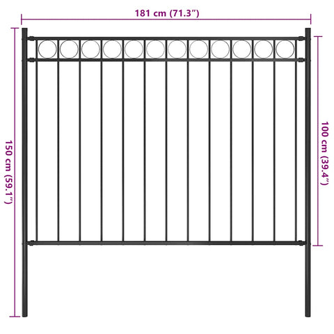 Create a secluded space and privacy for your house from the outside world with our decorative garden fence! This steel fence is highly stable and durable, forming a practical security barrier for your garden, patio or terrace. Our border fence provides a high degree of security and privacy with its elegant circle top design and strong horizontal posts to reinforce the frame. The outdoor fence, manufactured from heavy-duty, powder-coated steel, is also very strong, stable, sturdy and durable. The mounting materials are included in the delivery.