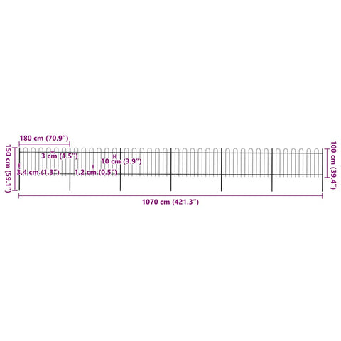 Garden Fence with Hoop Top Steel 1070x100 cm Black 277661