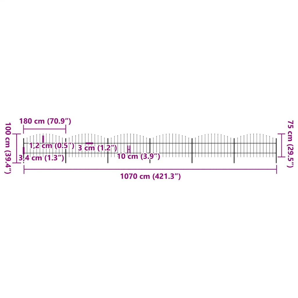 Garden Fence with Spear Top Steel 1070x100 cm Black 277717