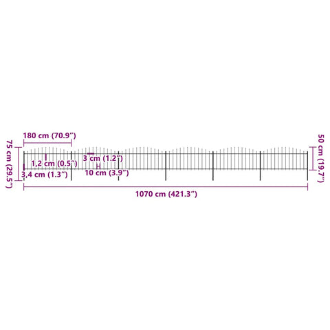 Garden Fence with Spear Top Steel 1070x75 cm Black 277708