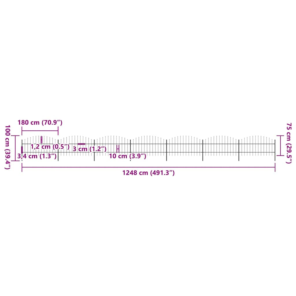 Garden Fence with Spear Top Steel 1248x100 cm Black 277718
