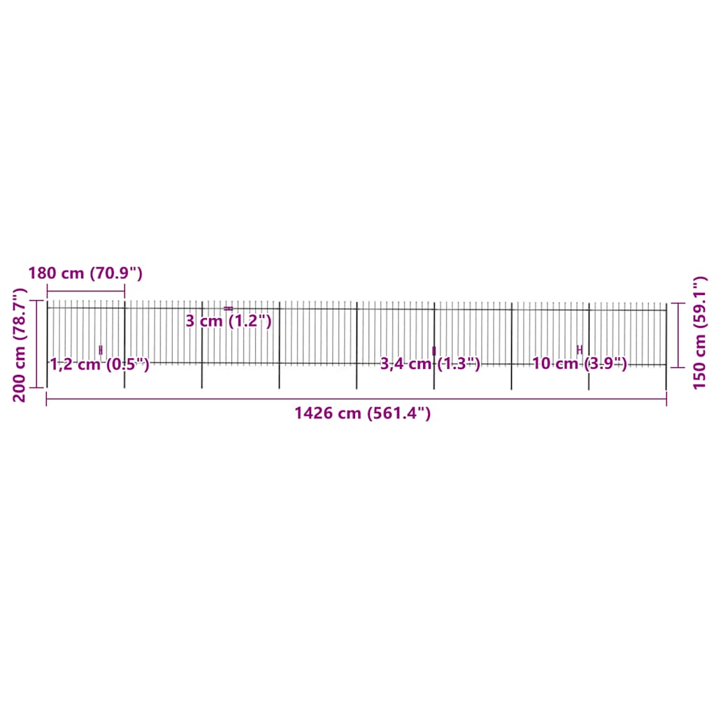 Garden Fence with Spear Top Steel 1426x150 cm Black 277636