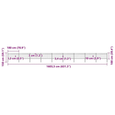 Garden Fence with Spear Top Steel 1603.5x100 cm Black 277619