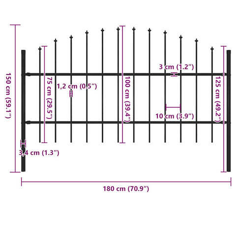 Garden Fence with Spear Top Steel 181x100 cm Black 144941