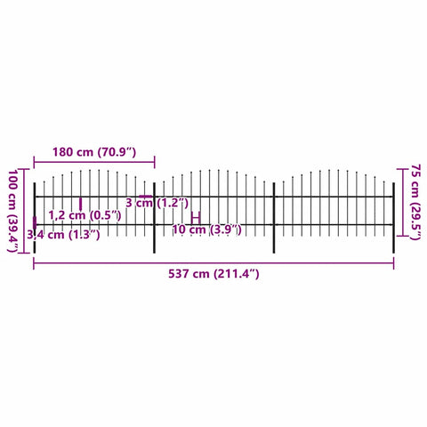 Garden Fence with Spear Top Steel 537x100 cm Black 277714