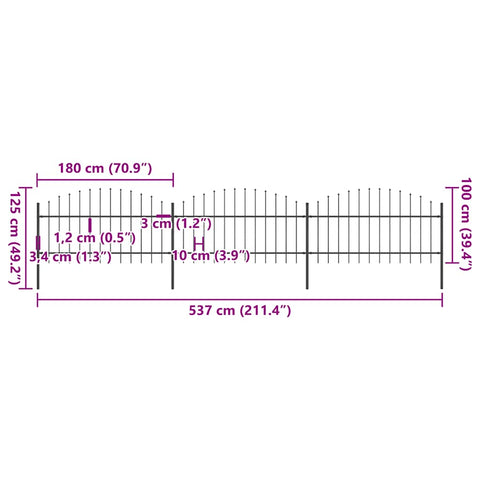 Garden Fence with Spear Top Steel 537x125 cm Black 277723