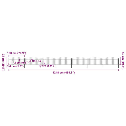 Garden Fence with Spear Top Steel x11.9 m Black 277709