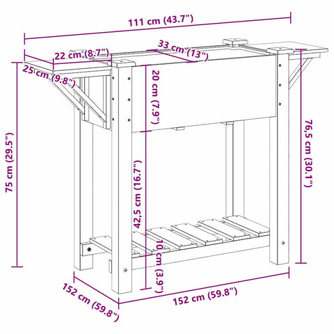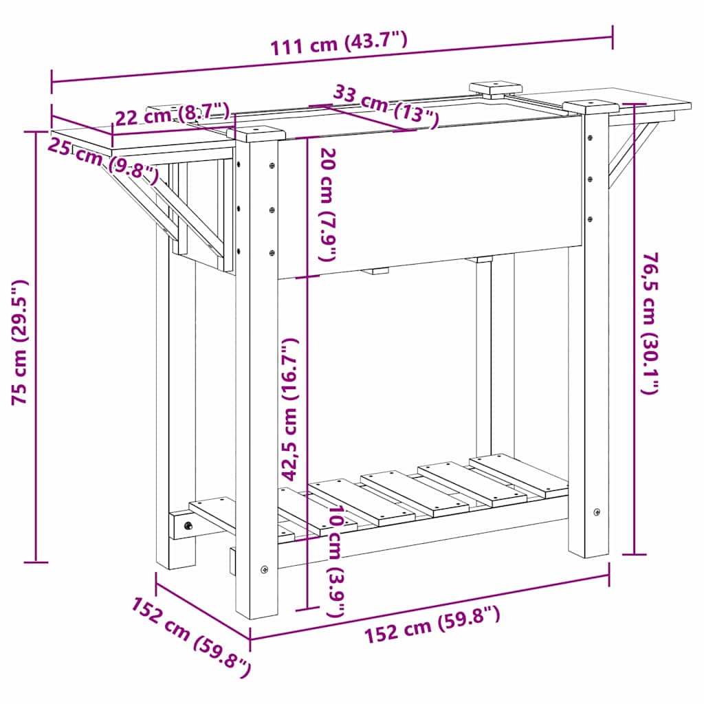 The Wooden Garden Planter with Shelf is all about mixing style and practicality. It’s a chic addition to any outdoor spot. With its minimalist look, this planter blends effortlessly into loads of settings, sprucing up gardens and terraces alike. Made from solid fir wood, this planter has a timeless feel with its rustic finish, giving off that lovely countryside vibe. Its smooth surface and rectangular shape are spot on for all sorts of plants or decorative displays, making it a fab way to elevate your garden's atmosphere. Materials: Crafted from solid fir wood, this planter is all about durability and good looks. The wood is chosen for its weather resistance, so it’s built to last. The smooth surface looks posh, while the rustic finish ties in nicely with nature, blending in with your outdoor area effortlessly. Included Components: The planter has a built-in shelf for extra storage. Made from the same strong fir wood, this shelf makes it easy to get to your gardening tools or cute decorations. It’s perfect for keen gardeners who want something that’s both handy and stylish. Features / Function / Design: This planter keeps things simple with clean lines and a straightforward structure. Its rectangular shape is classy yet understated, and the extra storage feature helps meet the needs of both gardeners and decorators. Recommended Uses: Ideal for gardens, terraces, or any outdoor space, this planter can turn any area into a lively retreat. It’s great for planting flowers, herbs, or veggies, bringing that refreshing greenery into the mix. Its versatile design makes it suitable for all sorts of outdoor settings. Care & Maintenance: Putting the planter together is super easy with just a screwdriver needed. Once it’s set up, keeping it looking good is a piece of cake. Just wipe it down with a damp cloth to keep it clean, and steer clear of harsh chemicals. It’s a low-maintenance choice for outdoor areas, staying beautiful with minimal effort.