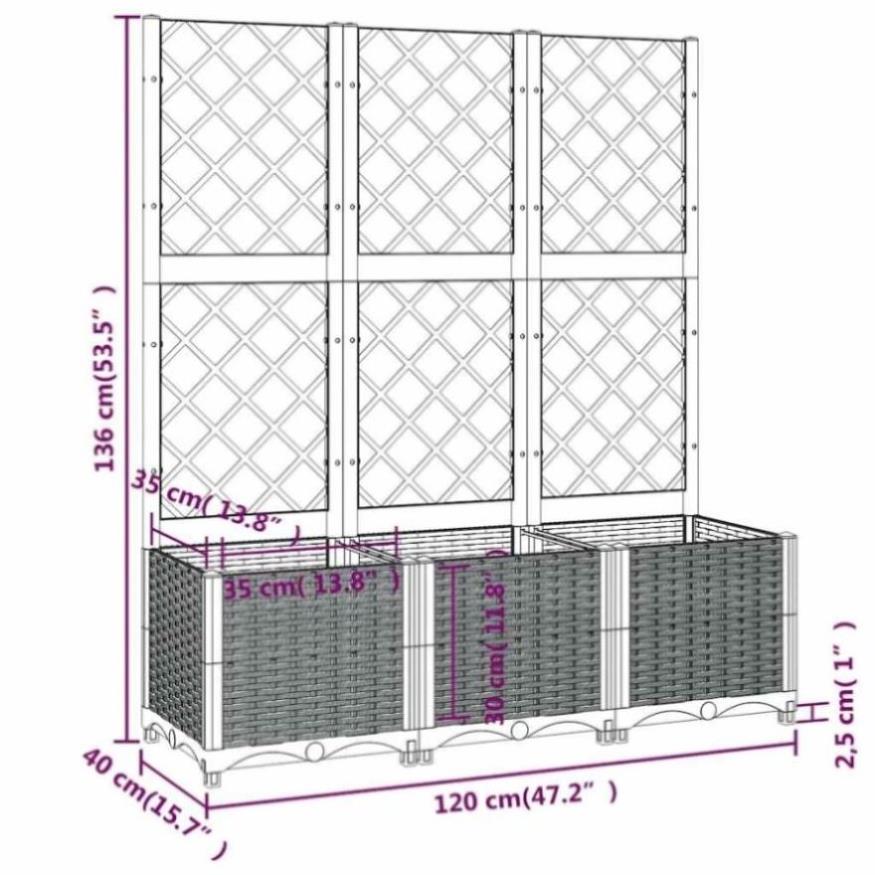 Garden Planter with Trellis Blue Grey 120x40x136 cm PP 318253