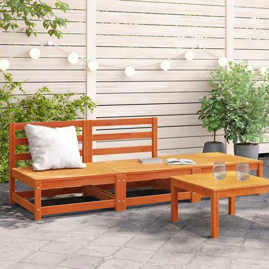 Garden Sofa Armless with Footstool Wax Brown Solid Wood Pine 837967