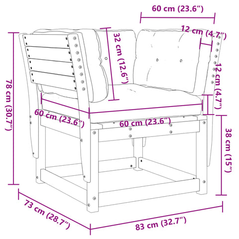 This wooden garden sofa with cushions will make a great addition to your garden, terrace, or patio for chatting with family and friends or just enjoying the weather. Solid pine wood: Solid pine wood is a beautiful natural material. Pine wood has a straight grain, and the knots give the material its signature, rustic look. Made of solid pinewood, this outdoor sofa is durable and stable.Comfortable seat experience: The backrest and the cushions make the garden sofa chair more comfortable to sit on.Slatted design: The slatted design of the outdoor sofa effectively prevents water from pooling, ensuring that the seat remains dry and free from potential rot.Modular design: This single sofa features a modular design, making it completely flexible and easy to move around to suit any setting. You can combine it with other modular segments available in the drop-down menu to create your own personal garden lounge set configurations! Good to know:To make sure your outdoor furniture stays beautiful, we recommend protecting it with a waterproof cover.