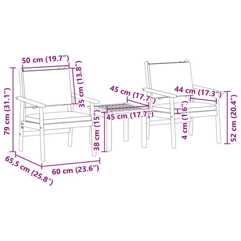 Garden Sofa Set with Cushion 3 pcs Brown Solid Acacia wood 4106577