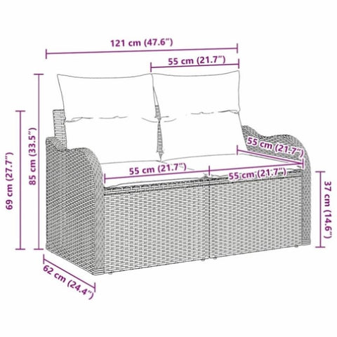 The Garden Sofa brings a contemporary vibe to your outdoor space with its sleek design, featuring clean lines and practical elegance. Ideal for gardens and terraces, its modern look is further enhanced by comfy poly rattan, making it perfect for lazy afternoons or friendly get-togethers. Top-notch Materials: The Garden Sofa is made from high-quality poly rattan, tough against wear and sun damage. It stays looking fresh even outside, making it a great long-term pick. Plus, it's soft, adding extra comfort for a laid-back vibe. Sturdy Frame and Legs: Built with strong steel, the frame gives solid support, ensuring it's stable and durable. The design of the post legs means it can handle weight well, making it safe and reliable in all weathers. Handy Features: With functional armrests, the sofa caters to everyone, providing comfy support for long sitting sessions. This thoughtful detail makes it great for both casual lounging and more formal events on patios or terraces. Super Versatile: Perfect for gardens or terraces, this sofa fits in nicely with any decor, from modern urban balconies to charming country gardens. Easy to Set Up: You’ll need a screwdriver and a couple of hands to set it up, which makes getting it ready for use a hassle-free affair. Just follow the straightforward instructions and you’ll be chillin’ in no time.