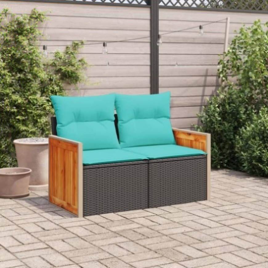 Garden Sofa with Cushions 2-Seater Black Poly Rattan 366037