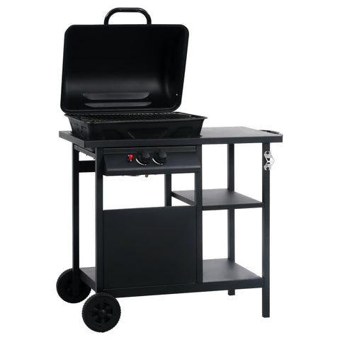 Gas BBQ Grill with 3-layer Side Table Black 47390