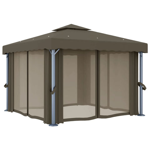 Gazebo with Curtain&LED String Lights 3x3 m Taupe 3070349