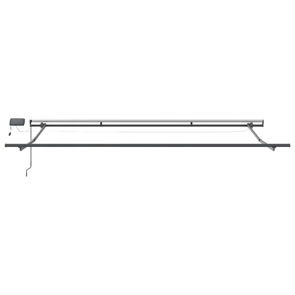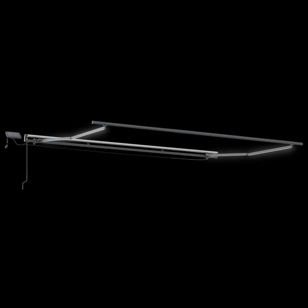 Create a nice and cool place on your patio and protect yourself from the UV rays with this retractable awning! Durable material: The awning frame is made of powder-coated aluminium, which is robust and durable. The fabric with PU surface treatment is UV resistant. It will prevent your family or guests from UV rays and dazzling sunlight.Easy to operate: The angle and height can be adjusted to meet your different needs. You can open and retract the awning smoothly via the long-hand crank.LED lights: The integrated LED lights of the awning illuminate your outdoor living space and create a cosy and romantic ambience when the sun goes down.Wide applications: The retractable awning features a simple, stylish design that will blend well with your home or commercial settings. It is suitable for a variety of places, such as balconies, patios, yards, restaurants, cafes, shops, and more.