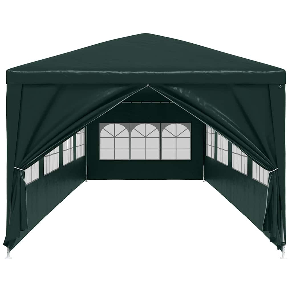 Our partytent provides a wonderful place to entertain your family and friends at all sorts of outdoor parties and get-togethers. Durable material: The garden marquee is made of UV- and water-resistant polyethylene material and therefore very practical for outdoor use. Stable frame: The frame is manufactured from rust-resistant steel, making the outdoor canopy stable and durable. Practical design: The party tent has side panels, each with decorative windows, and 2 door panels with a zip for easy entrance. The garden gazebo is easy to assemble. Good to know:This product should NEVER be used under bad weather, such as strong wind, heavy rain, snow, storm, etc.This product is not suitable for use as a carport.