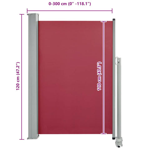 Patio Retractable Side Awning 120x300 cm Red 48345