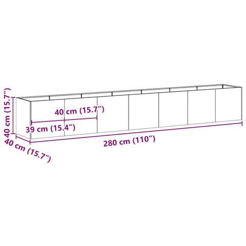 Enhance your outdoor spaces with this stylish planter, perfect for gardens, balconies, and patios. Durable material: The product is made of durable stainless steel, providing resistance to corrosion and rust and ensuring years of reliable use.Ample space: The deep and wide raised bed offers plenty of space for soil, providing an ideal growing environment for plants, vegetables, herbs, and flowers. Its generous size allows for versatile planting options, perfect for any garden or outdoor space.Enhanced stability: Equipped with interior support brackets, this flower box ensures reliable sturdiness and stability. The reinforced design keeps the structure secure, even when filled with soil, offering long-term durability for your gardening needs.Decorative appeal: This planter box is designed to showcase your favourite plants or flowers while adding a stylish touch to your garden or patio. Its modern aesthetic and natural finish make it a standout decorative element that blends seamlessly with outdoor decor.Open bottom design: Featuring an open bottom, the planter allows for efficient drainage of excess water, preventing waterlogging. The design also promotes healthy plant growth by letting roots extend freely into the soil for better nutrient absorption. Good to know:This planter does not include a bottom.
