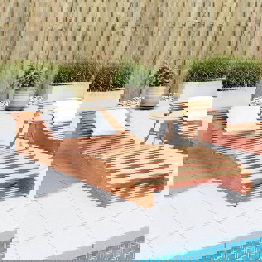 This wooden sun lounger is ideal for sunbathing and relaxing near the swimming pool, on the patio, or in the garden. Solid pine wood: Solid pine wood is a beautiful natural material. Pine wood has a straight grain, and the knots give the material its signature, rustic look. Made of solid pine wood, the sunlounger is sturdy and stable.Comfortable seating experience: The sunbed is ergonomically designed with an S-shaped lounging space, adding extra comfort.Slatted design: The outdoor sun lounger features a slatted design that allows for easy drainage and also adds a touch of natural charm to your outdoor living space.Wide applications: The outdoor lounge chair with its simple and timeless design is suitable for poolsides, balconies, gardens, patios, etc. Good to know:To make sure your outdoor furniture stays beautiful, we recommend protecting it with a waterproof cover.